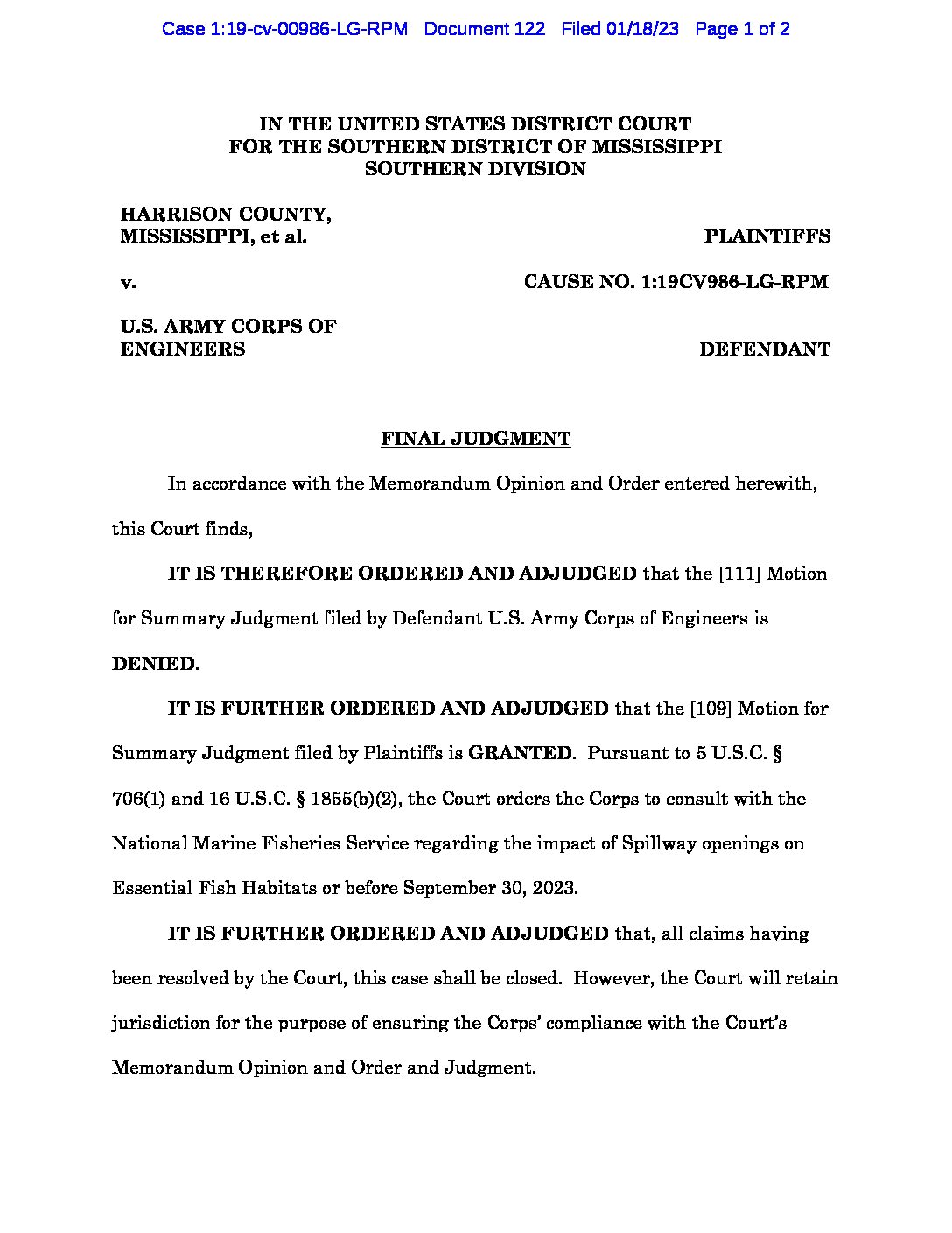 Bonnet Carre Final Judgment