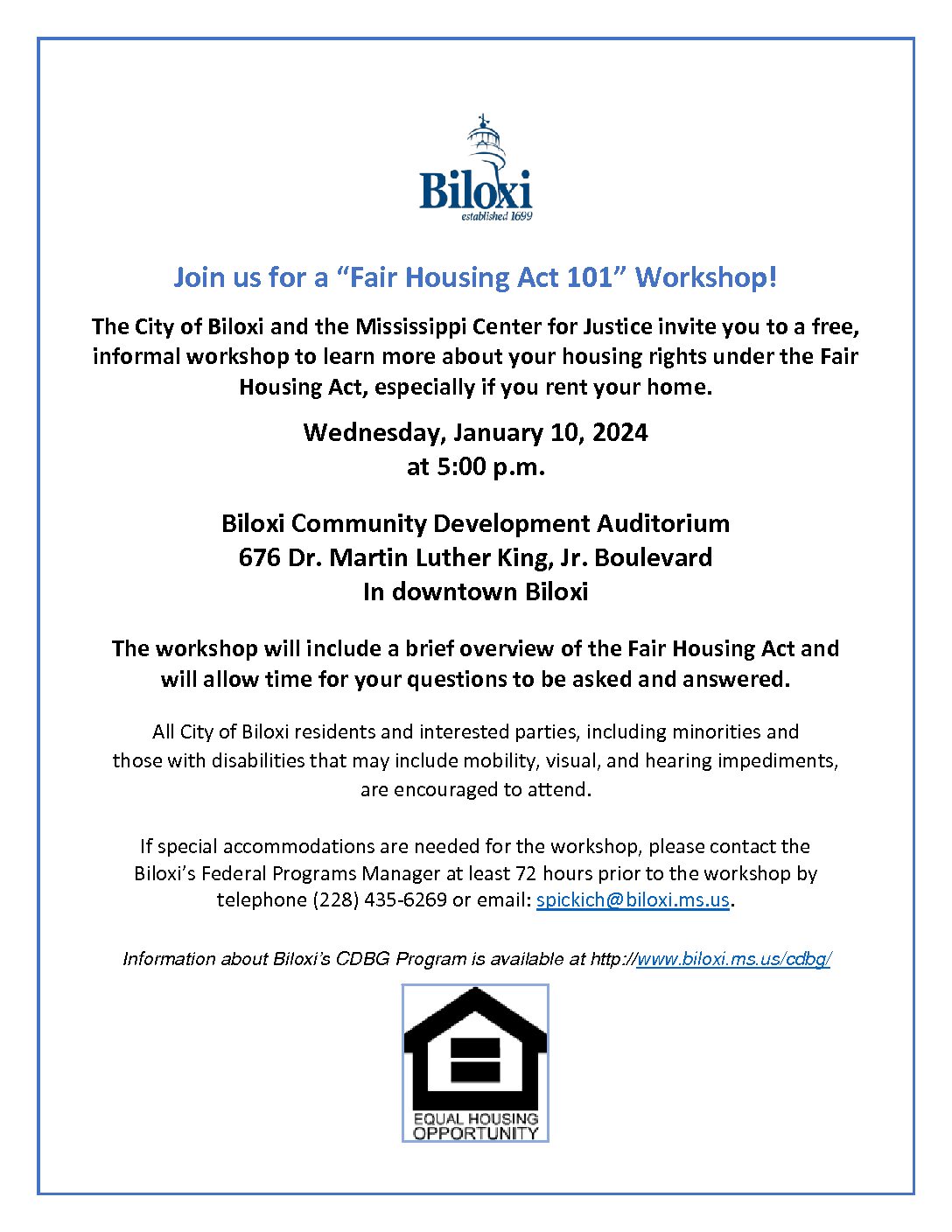 Fair Housing Workshop on 01 10 24 Flyer English